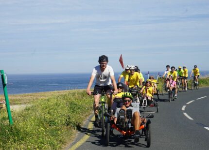 Environ 30 personnes dont 12 atteintes de la maladie ont parcouru la Bretagne en passant par Ergué-Gabéric (proche de Quimper), Brasparts, Brignogan-Plages, Plouarzel, Irvillac, Argol et Plonéis.